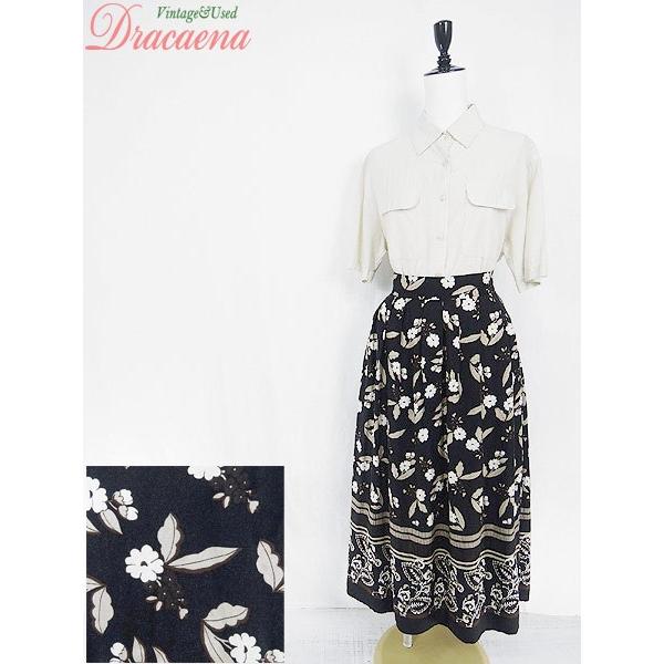 スカート古着 レトロ アニメ風 イラストタッチ 花柄 総柄 ブラック系 レーヨン素材 フレア スカート ロング丈 17ljl30c 古着屋ドラセナyahoo ショップ 通販 Yahoo ショッピング